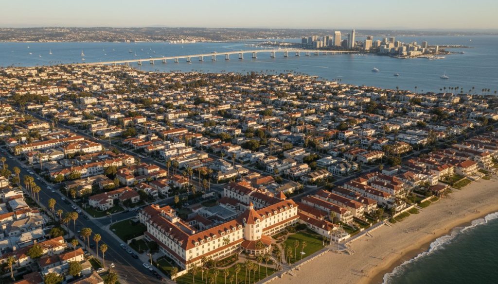 Coronado is a charming resort city located just across the bay from downtown San Diego. Known for the historic Hotel del Coronado and its pristine beaches, it offers a small town feel with a high quality of life. The community has a strong military presence due to the Naval Air Station North Island, creating a diverse and patriotic population. Living on the island means enjoying a unique blend of coastal leisure and a close knit community spirit.